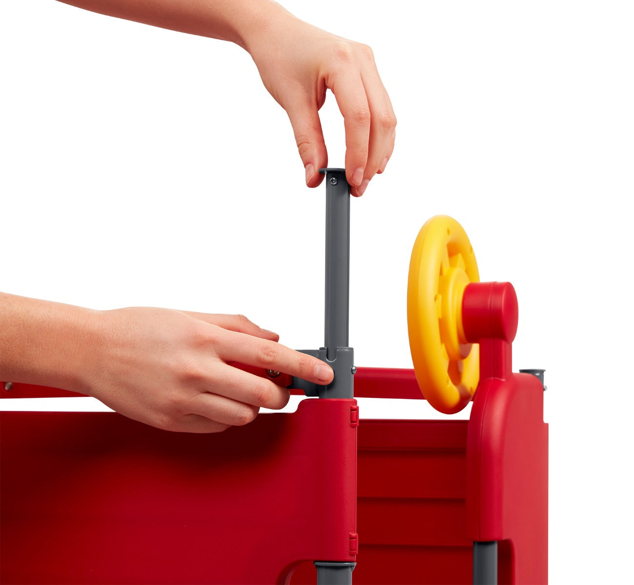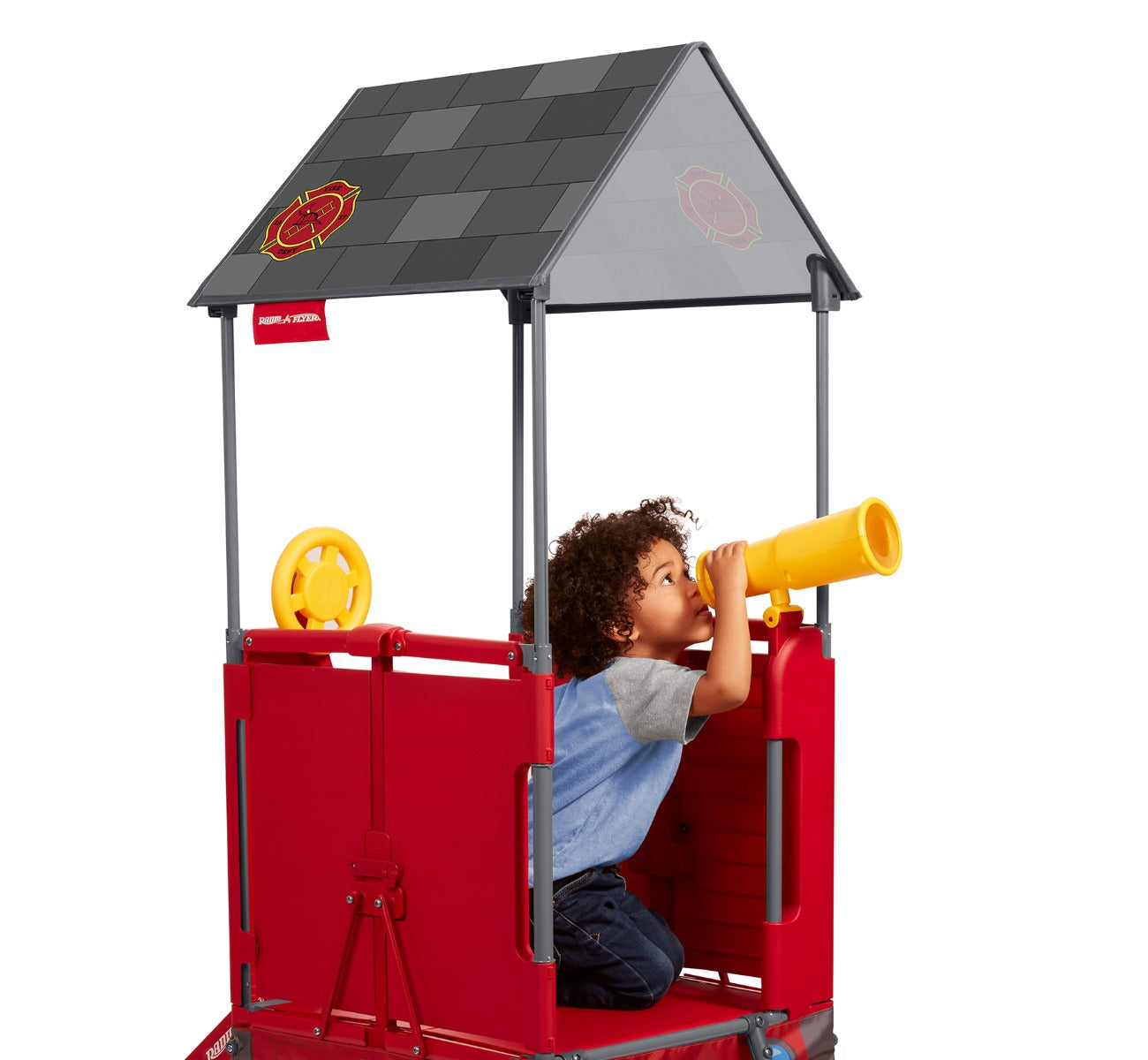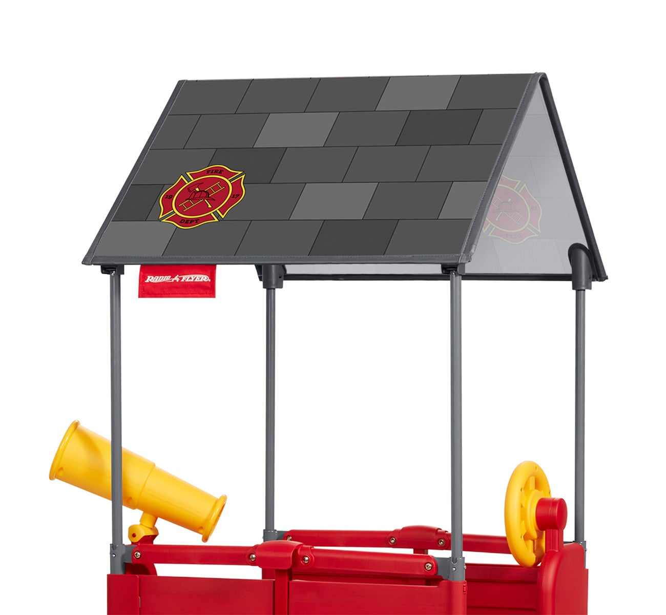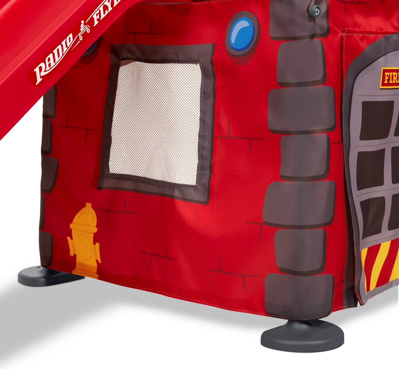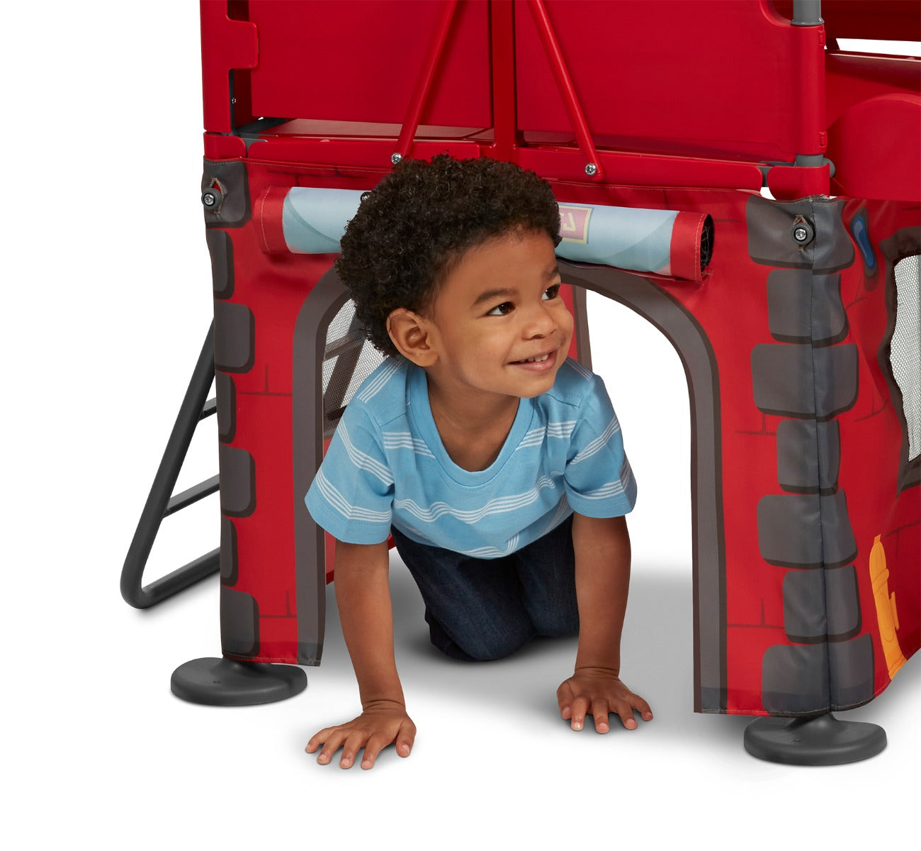 With its unique folding capabilities and carrying handle, this toddler climber is perfect for convenient storage when not in use. The fabric canopy is removable, and the canopy poles retract into the frame, so this fire station playhouse is perfect for tucking behind the couch or nestling in the small space between cabinets in the garage until your little one's next adventure!