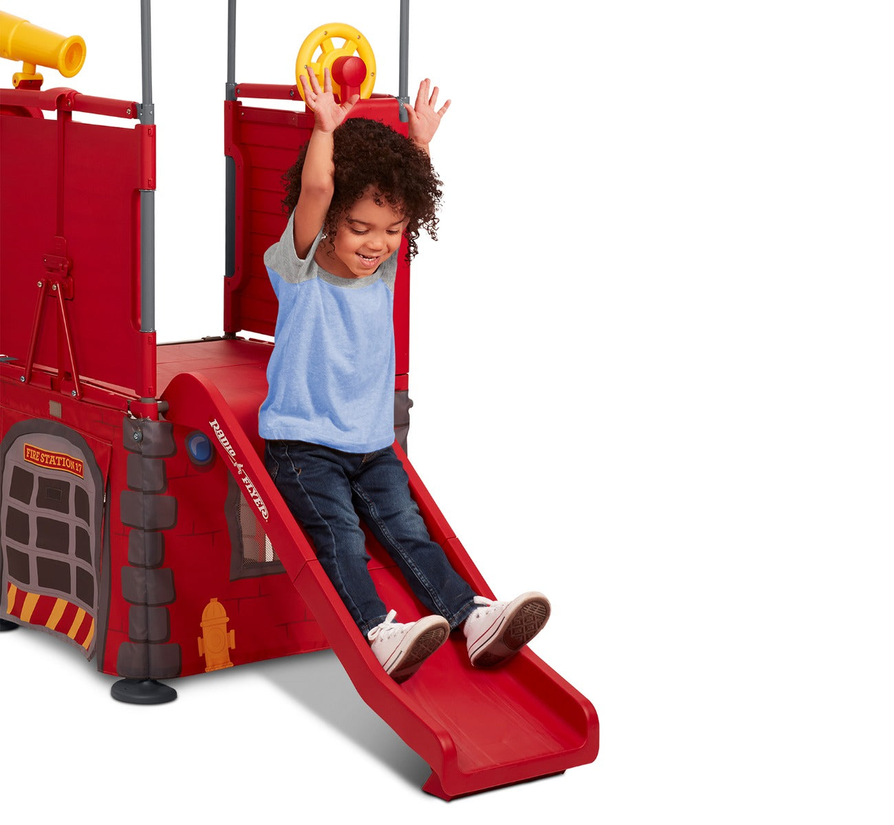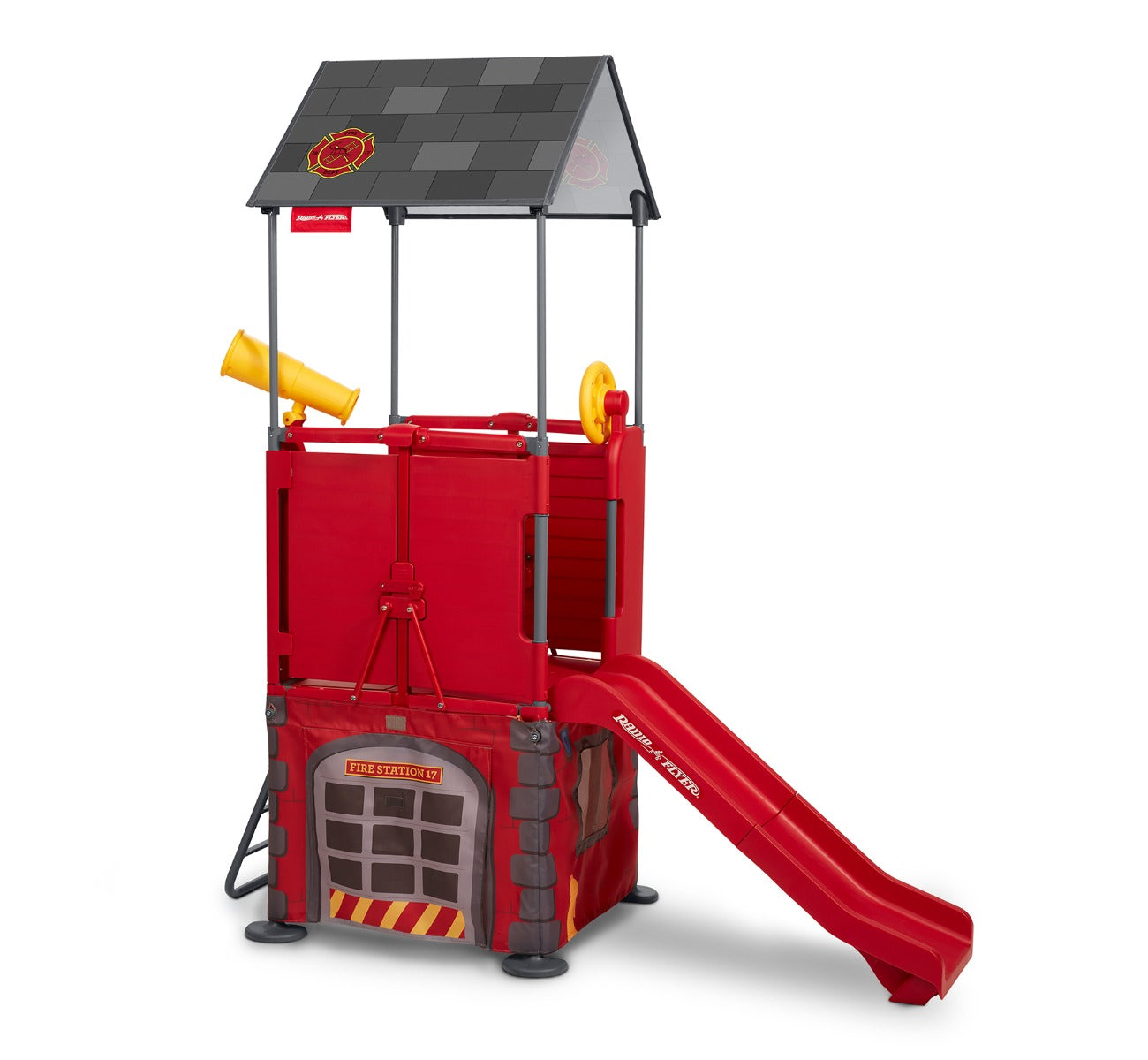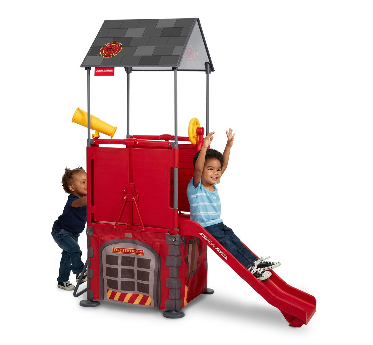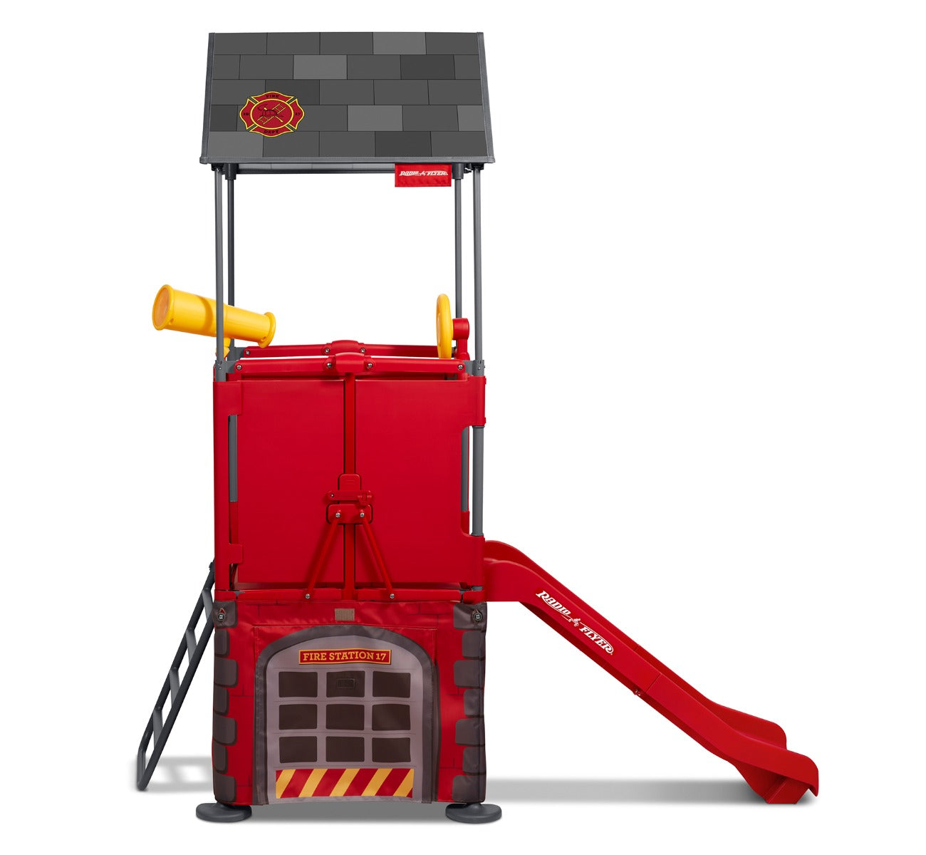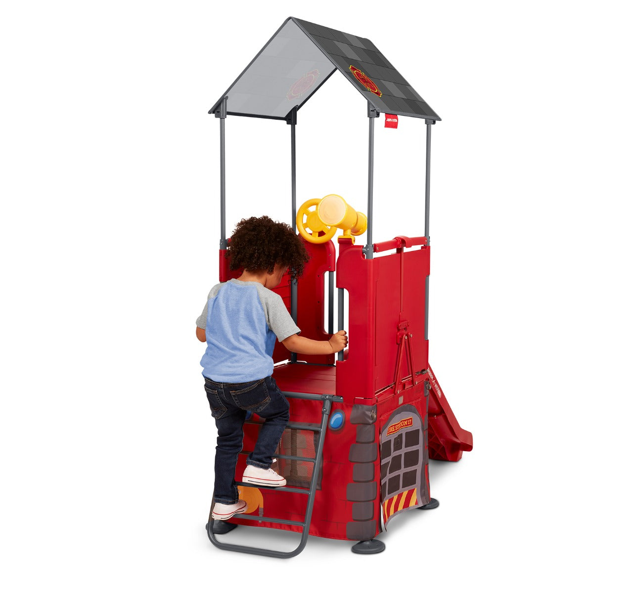 The built-in slide on the Play & Fold Away Fire Station climber delivers endless hours of fun! Come rain or shine, playtime never has to end as this climber can be used both indoors and outdoors. Perfect for your backyard or basement, your child can create their own adventures wherever they play with their very own fire station climber.