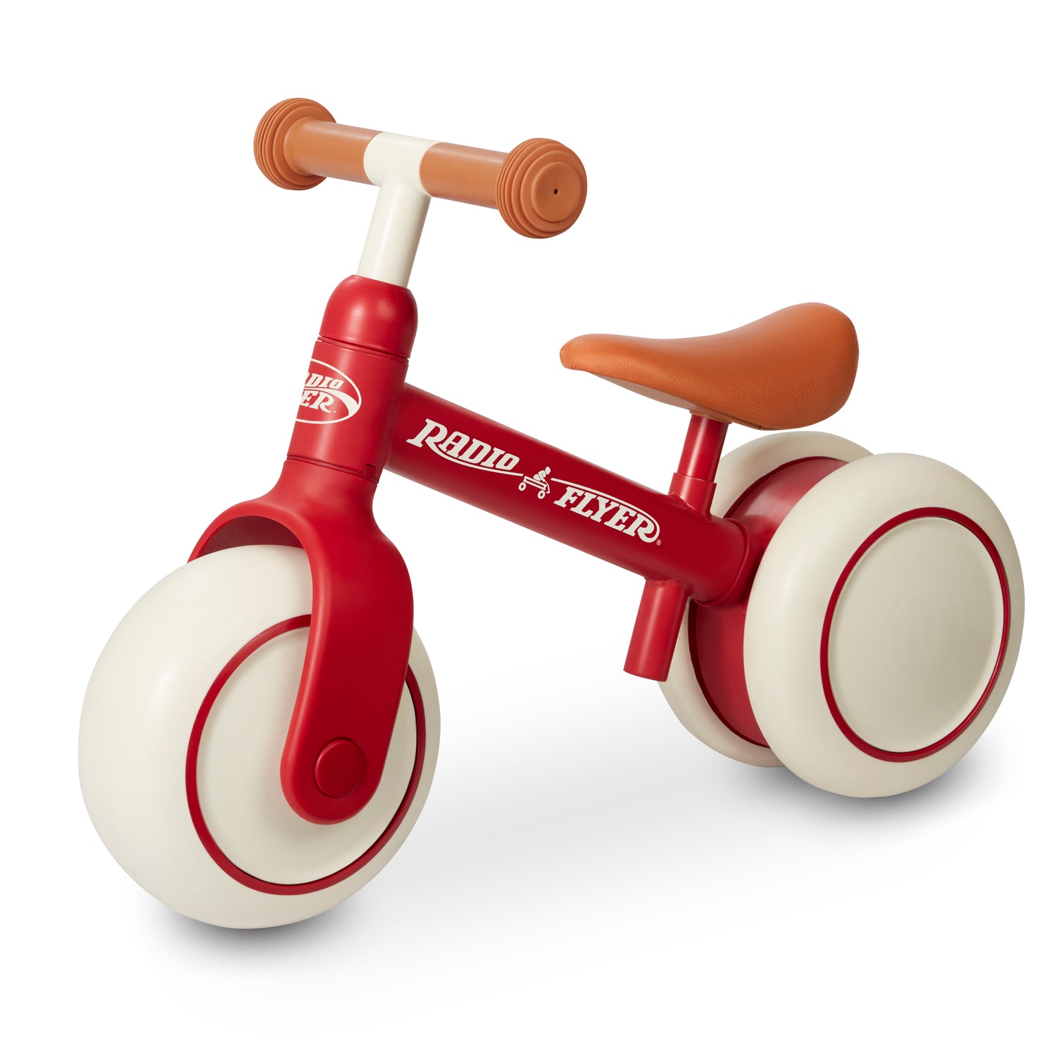 - Wide front wheel and two rear wheels provide stability for beginner riders