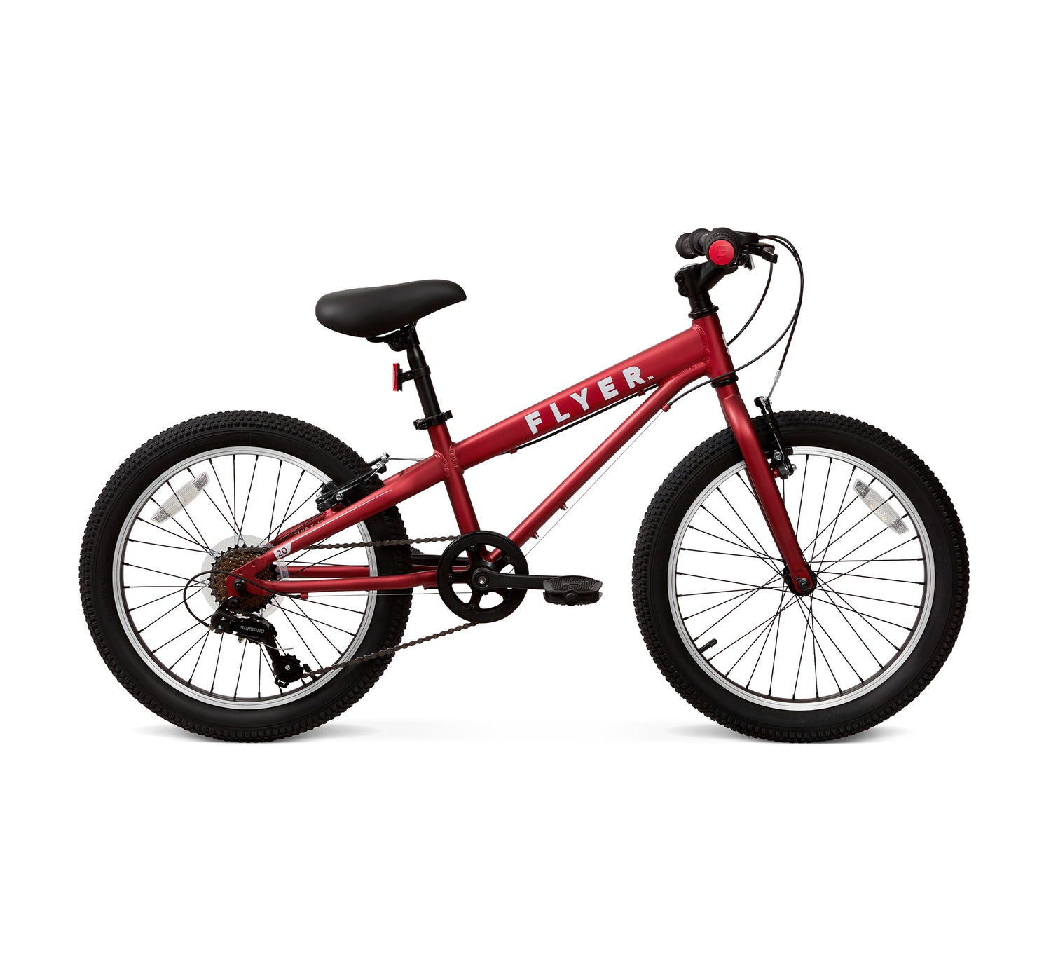 Comfort and fit are key to a fun riding experience. Flyer™ kids’ bikes are ergonomically designed with kid-specific geometry to deliver easy handling, stability, and a comfortable, upright riding position. This bike features an aluminum frame that is both lightweight and durable. Thick 20” tires ensure smooth rides from neighborhood sidewalks to park pathways.