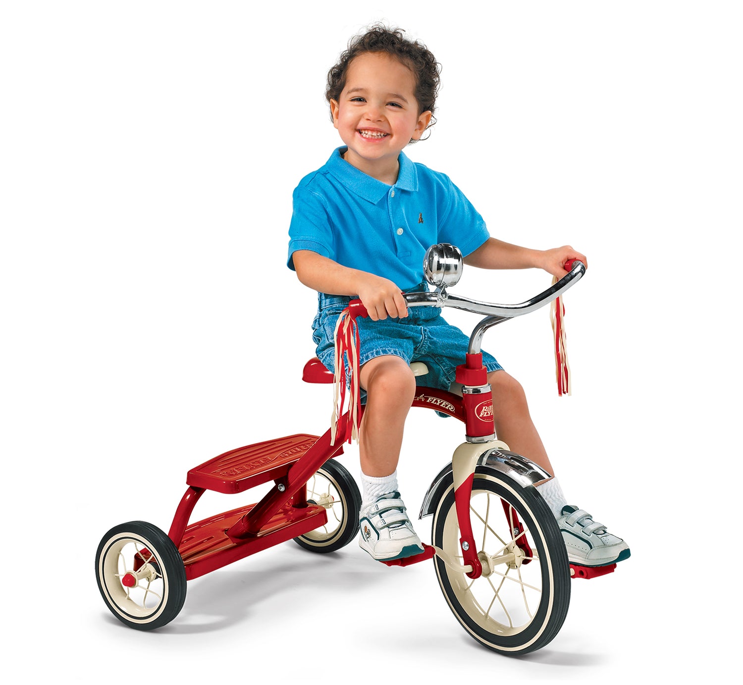 From the chrome handlebars and fender to the playful streamers and deluxe ringing bell, the classic style of this tricycle is a timeless icon of childhood.