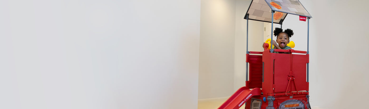 At Radio Flyer, we recommend our children’s climbing toys for little ones at age two or older. This will ensure that they’re old enough to safely enjoy all the fun features like ladders, slides, and telescopes.