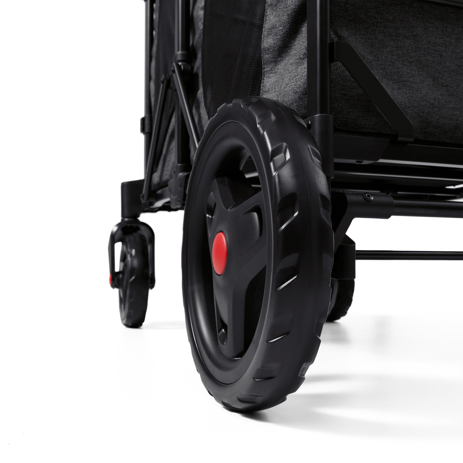 Enjoy family outings while feeling in control every step of the way. The extra tall wagons sides create a cozy cocoon for kids. Seamlessly maneuver through bustling crowds or navigate the twists and turns of the park - all while keeping everything and everyone contained in the wagon.
