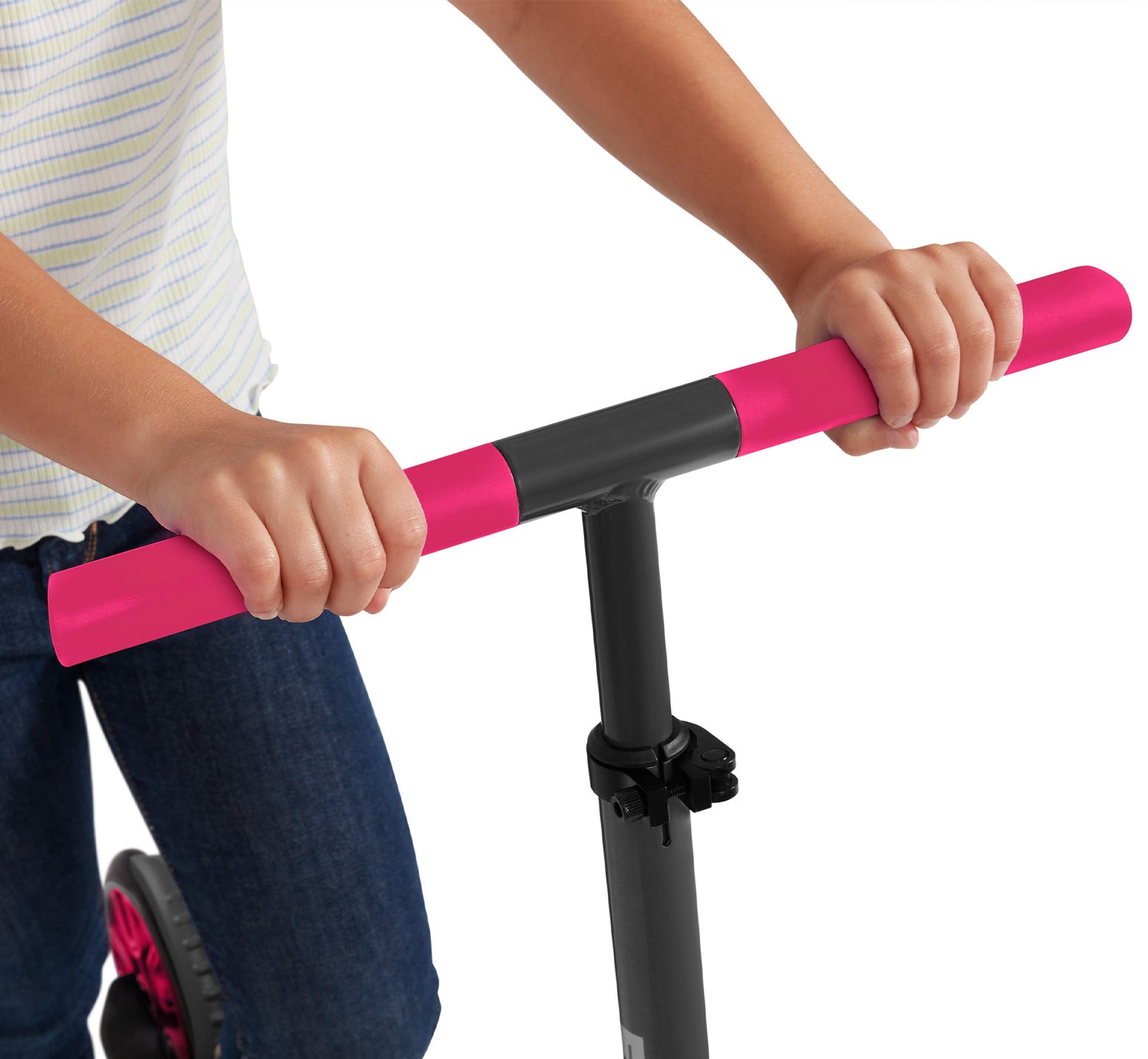 The riding adventures never have to end with the Flyer™ Kickstart Max. The nylon clamp allows the handlebar to freely adjust to the rider’s height as they grow. Deluxe handgrips offer comfort & control, making every ride easy, steady, and fun.