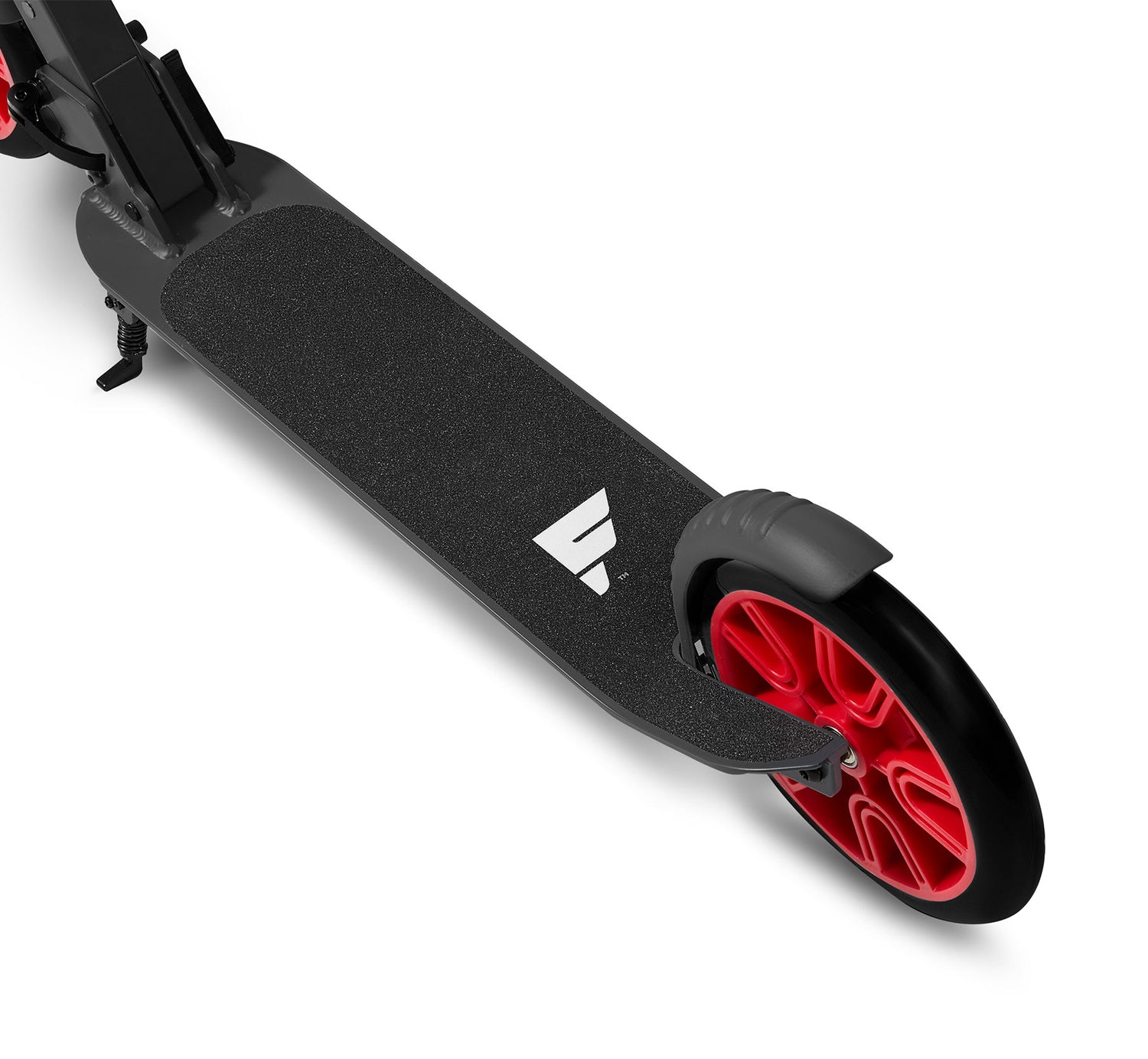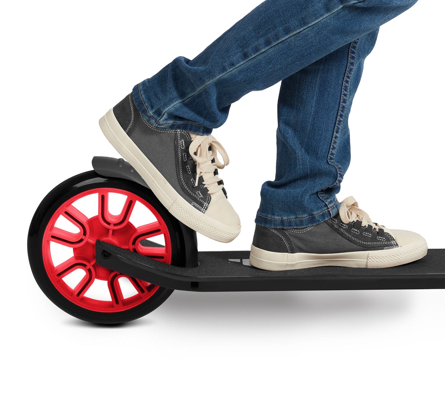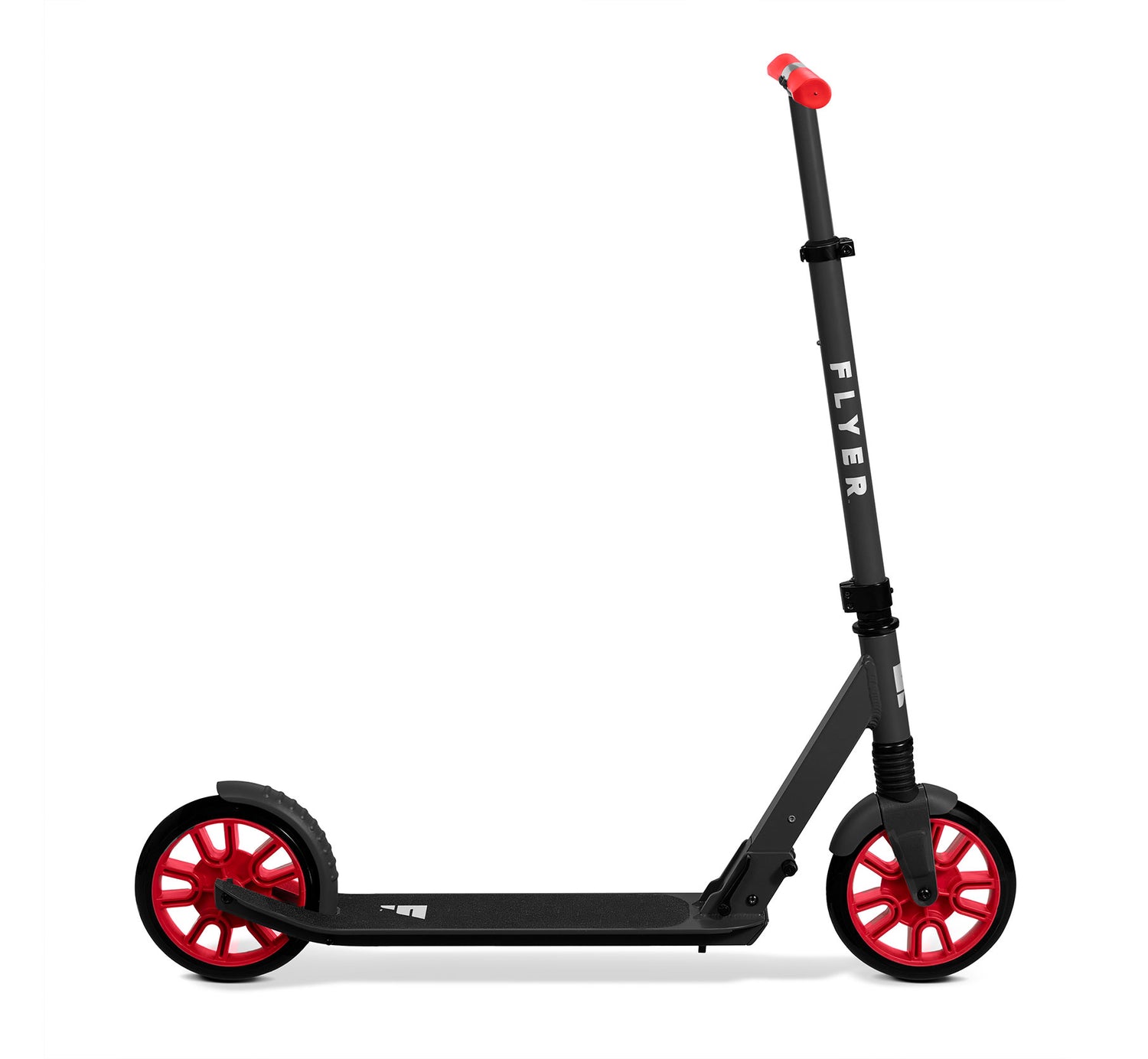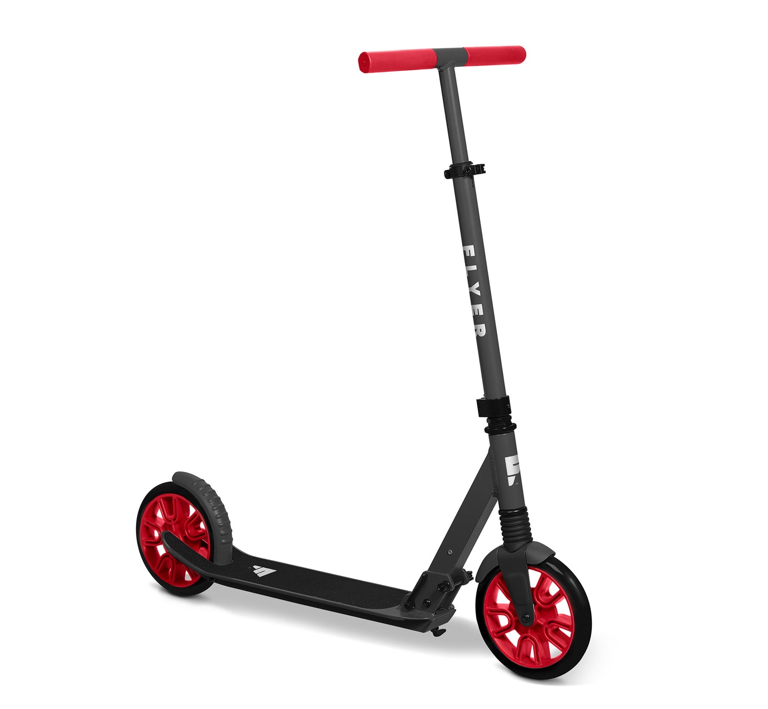 The Flyer™ Kickstart Max brings fast action to your neighborhood. This scooter is built with an aluminum frame that makes it light and durable. The 8” wheels provide a smooth ride, and the front suspension absorbs shock and other bumps. The Kickstart Max scooter comes equipped with a rear fender brake that makes stopping quick and easy. When not in use, prop the scooter on its kickstand or fold it for easy storage. The handlebar adjusts to any height to ensure years of fun. Maximum weight capacity of 220 lbs. Recommended for ages 8+ years.