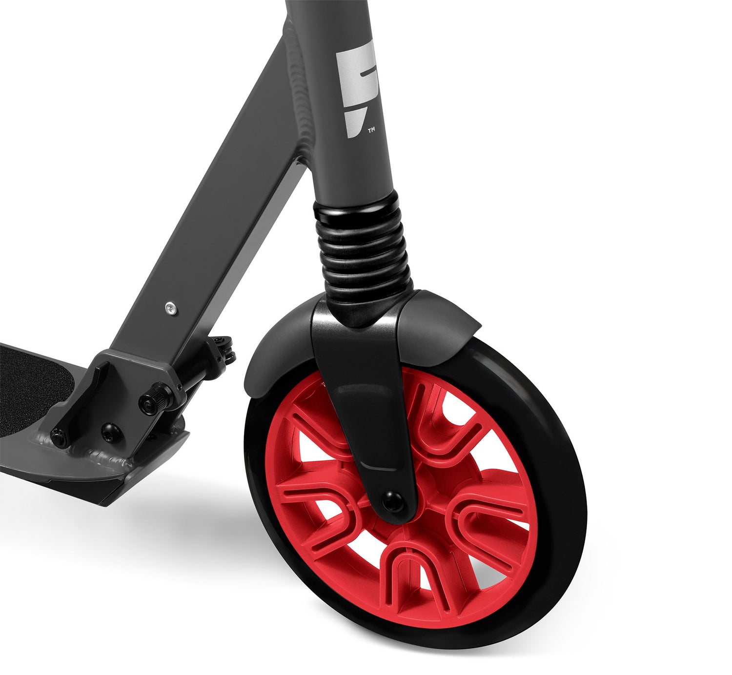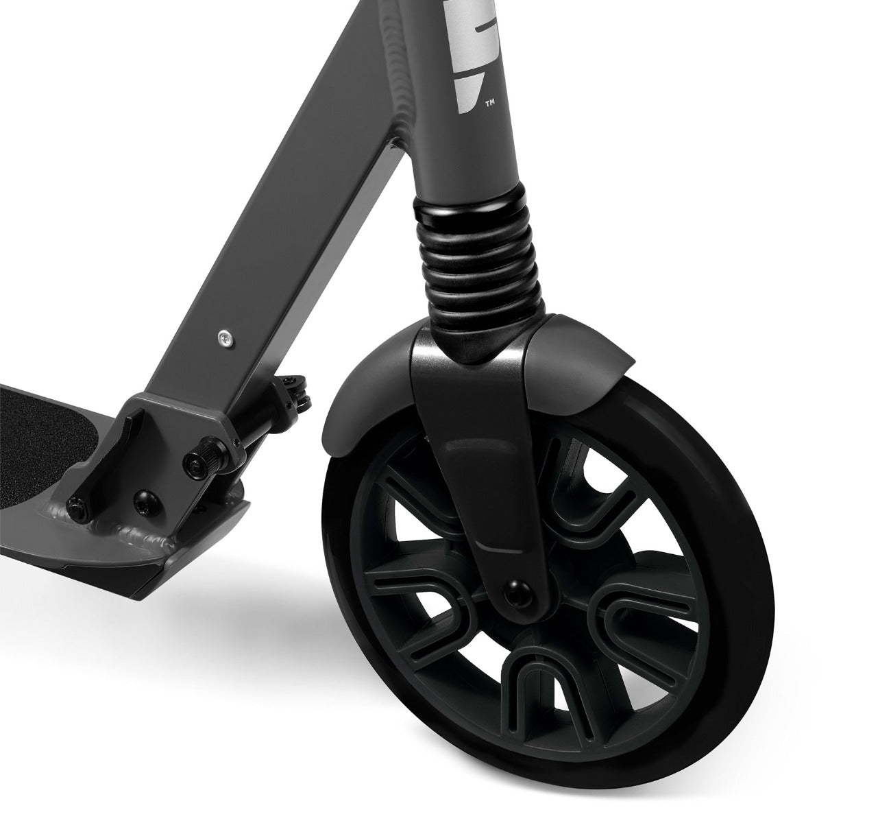 The Flyer™ Kickstart Max features 8” wheels that deliver a smooth riding expereince. Front suspension absorbs shock and other bumps.