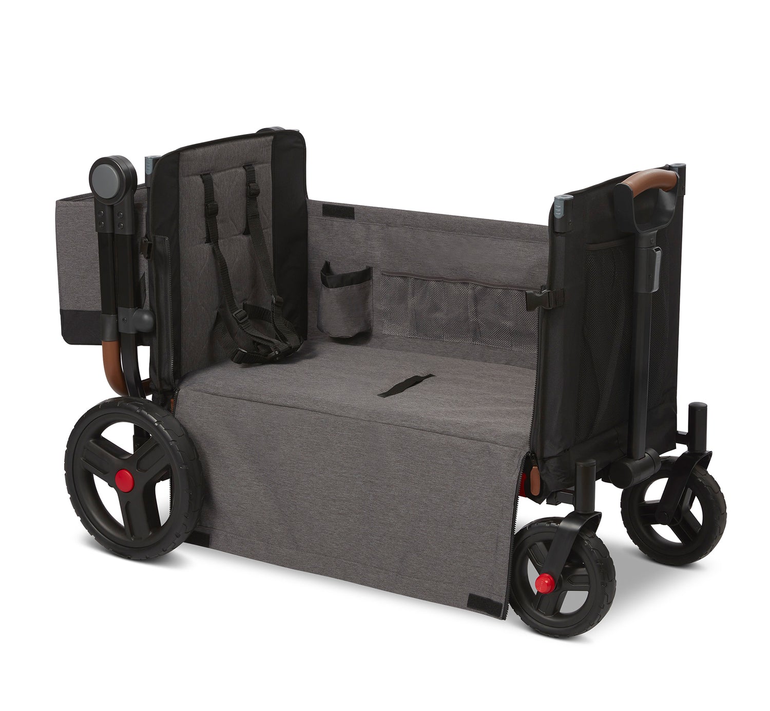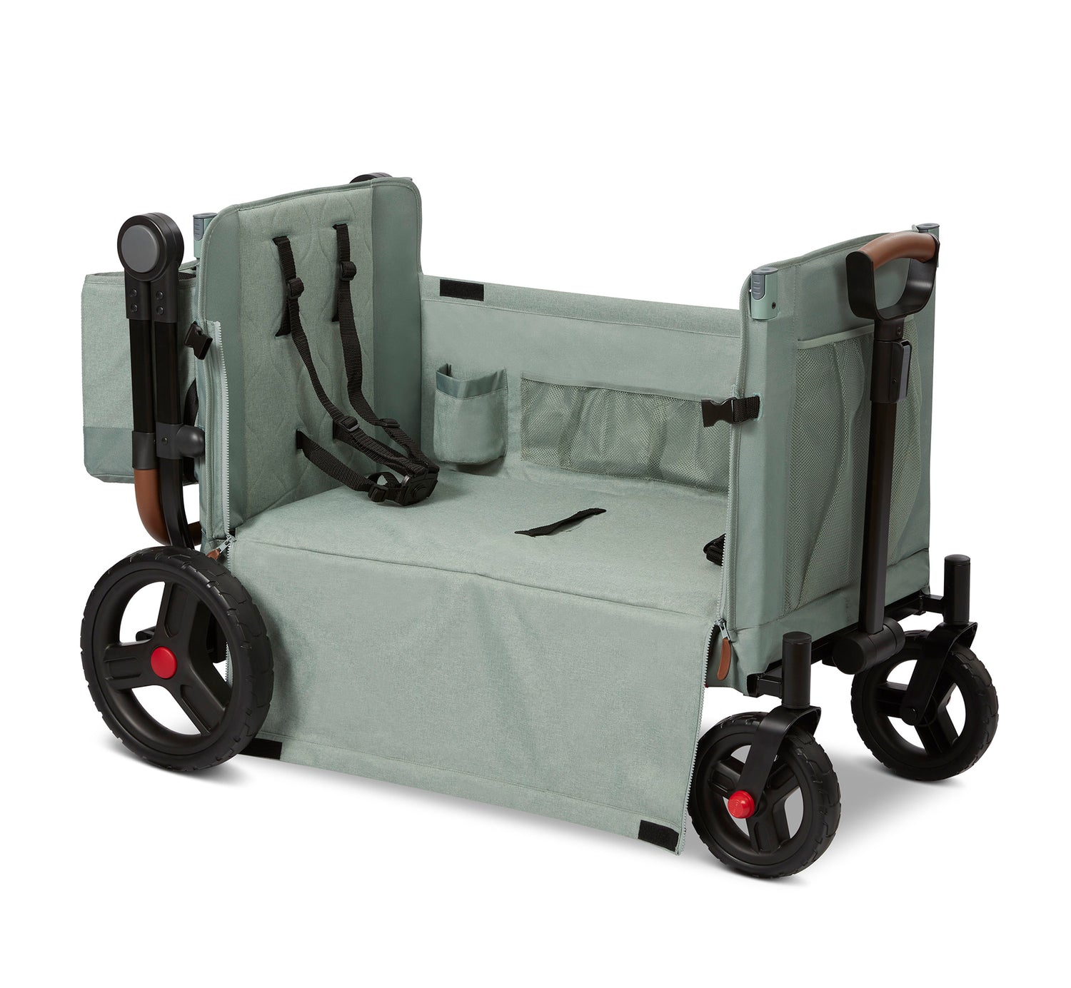 Travel in style with the Atlas Stroll 'N Wagon®. Crafted with Duraclean® 2.0 fabric, our highest quality fabric, this Atlas wagon includes premium features like 2 insulated cupholders, quilted seatbacks, zippered pockets, a center compartment with magnetic lid, and a rear storage bag that doubles as a removable tote bag. The UV protection canopy on this premium wagon has a peek-a-boo window and drop-down mesh shades on either side. The Atlas Stroll 'N Wagon® is the perfect choice for luxury, storage, and comfort.