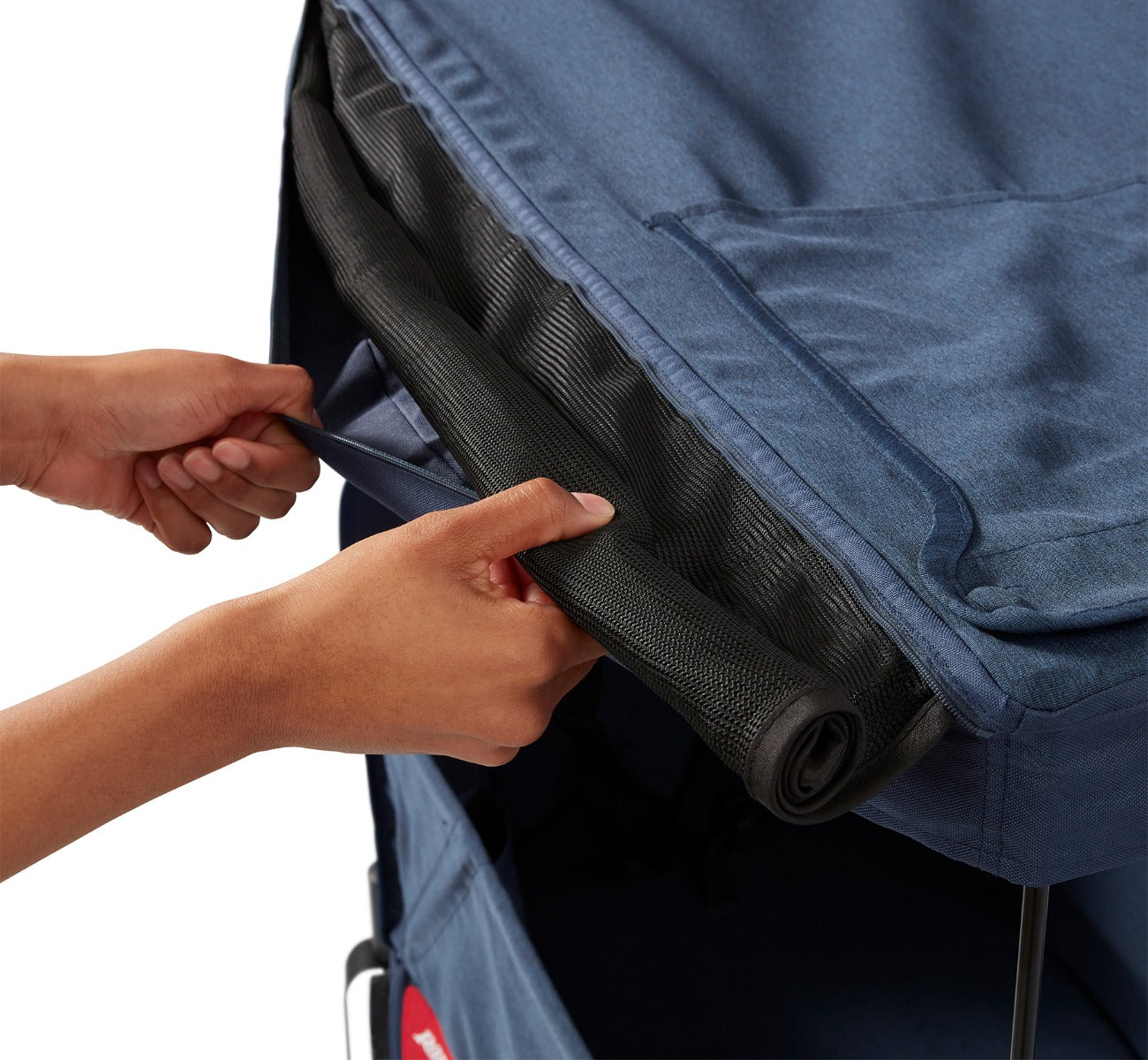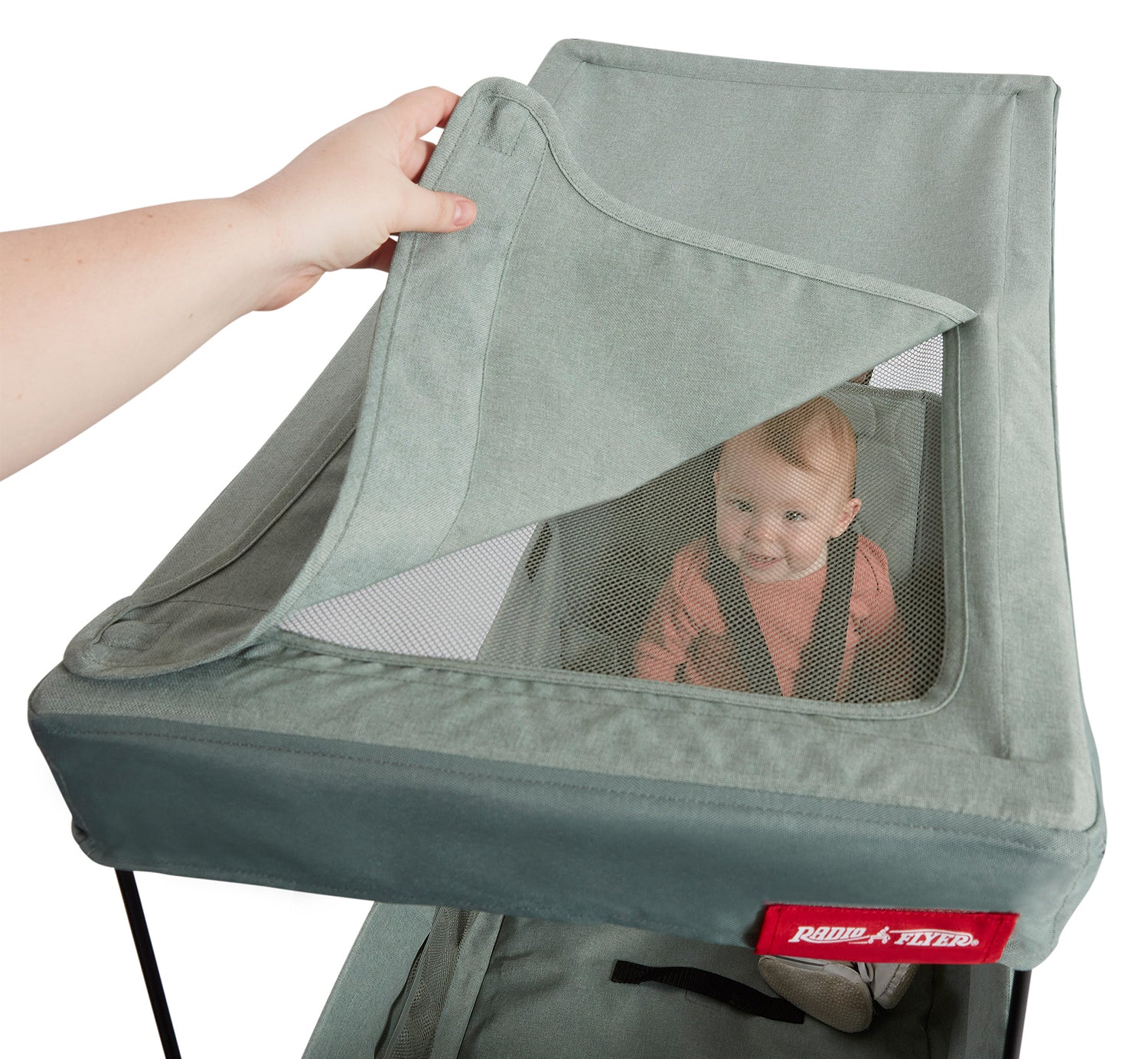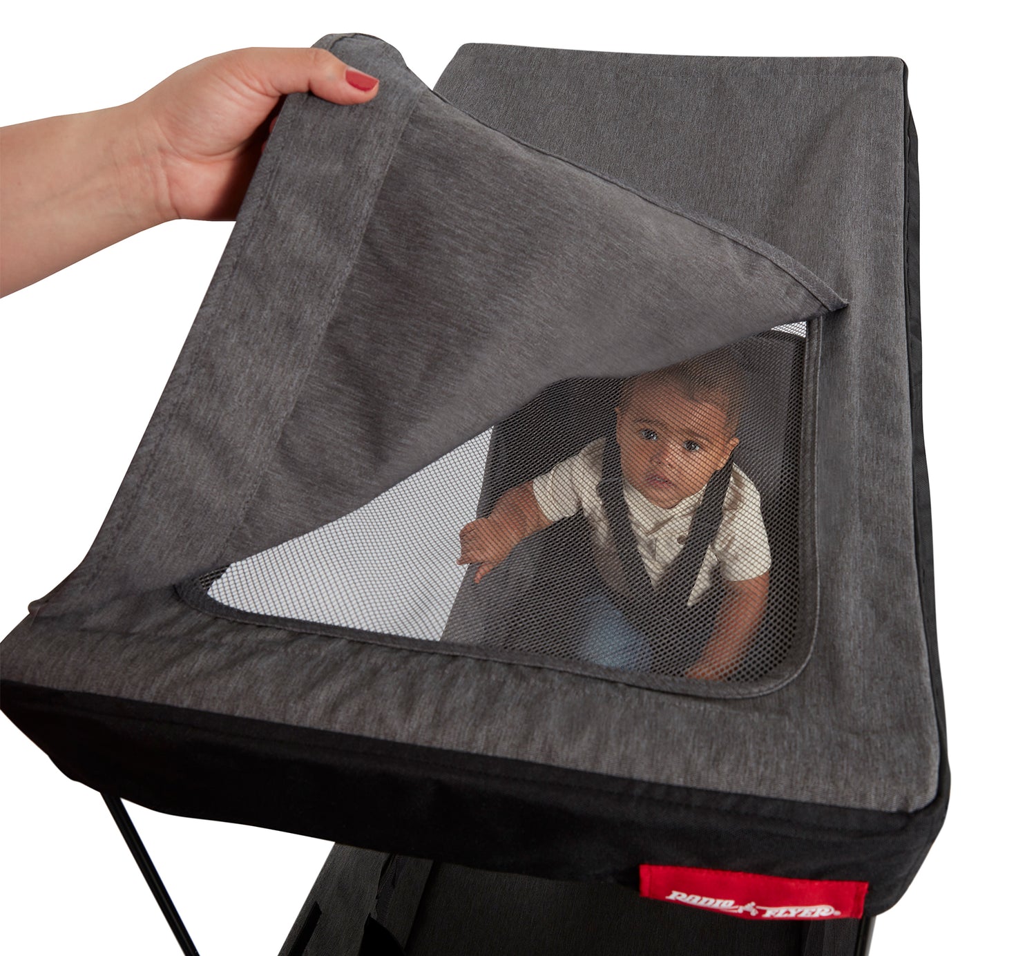 Versatile push & pull capabilities make this premium wagon comfortable to maneuver regardless of the type of journey your family is taking. Featuring a Never Fall™ pull handle and a built-in adjustable push bar, use the Radio Flyer Atlas as a push wagon or a folding pull wagon. The two 5-point safety harness seat belts and a rear brake keep babies as young as 12 months secure and comfortable.