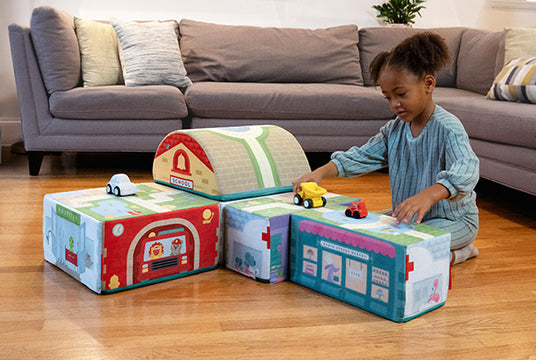 Cleaning is a breeze with Tumble Town® Foam Building Blocks. The microsuede fabric is removable and machine washable.