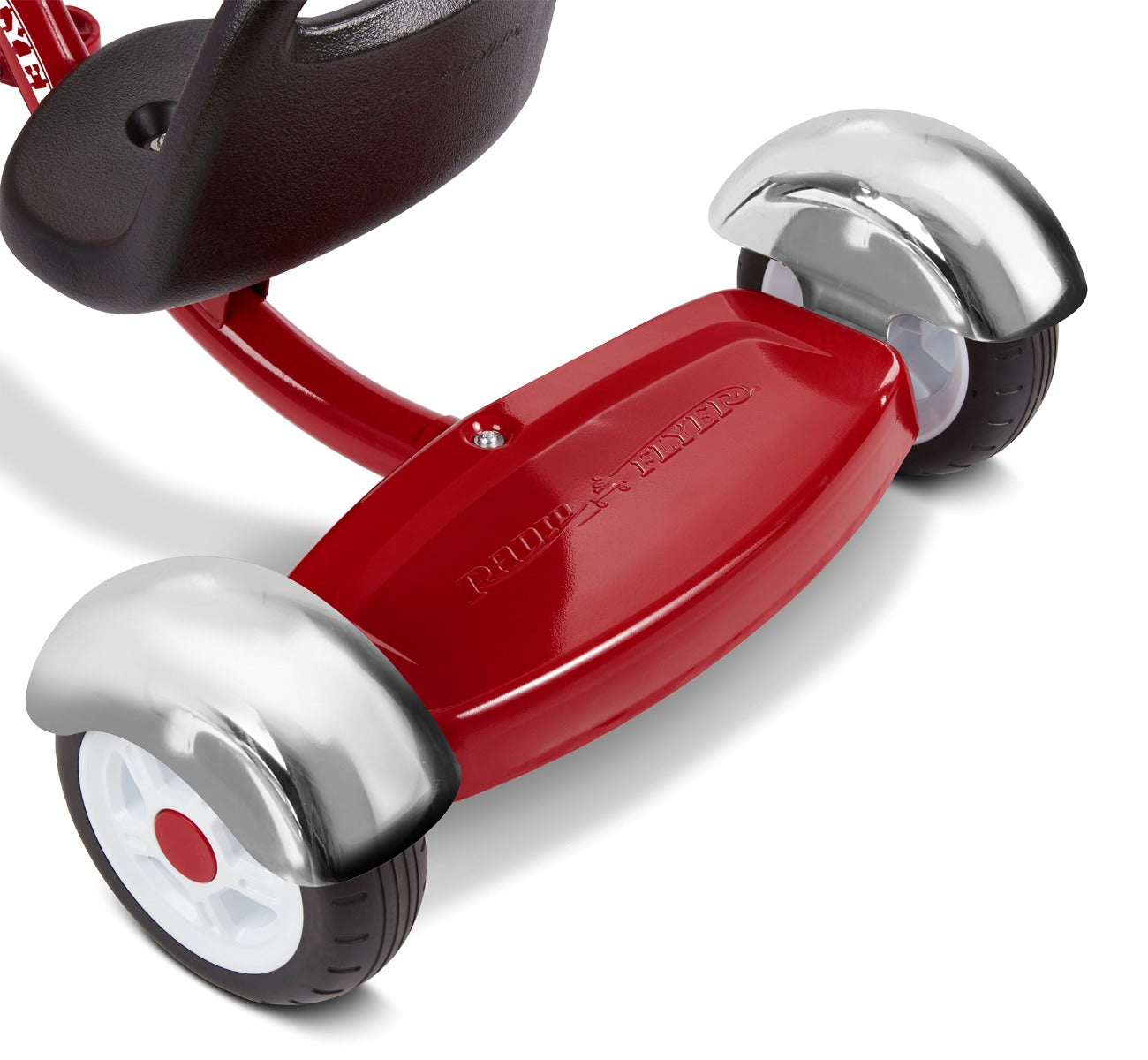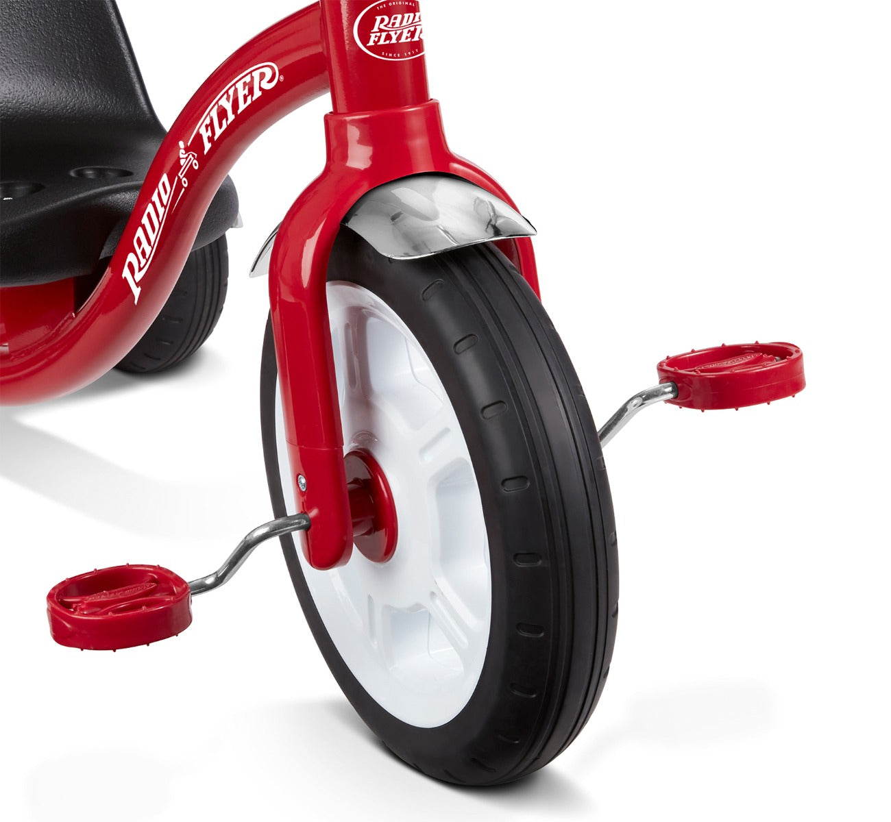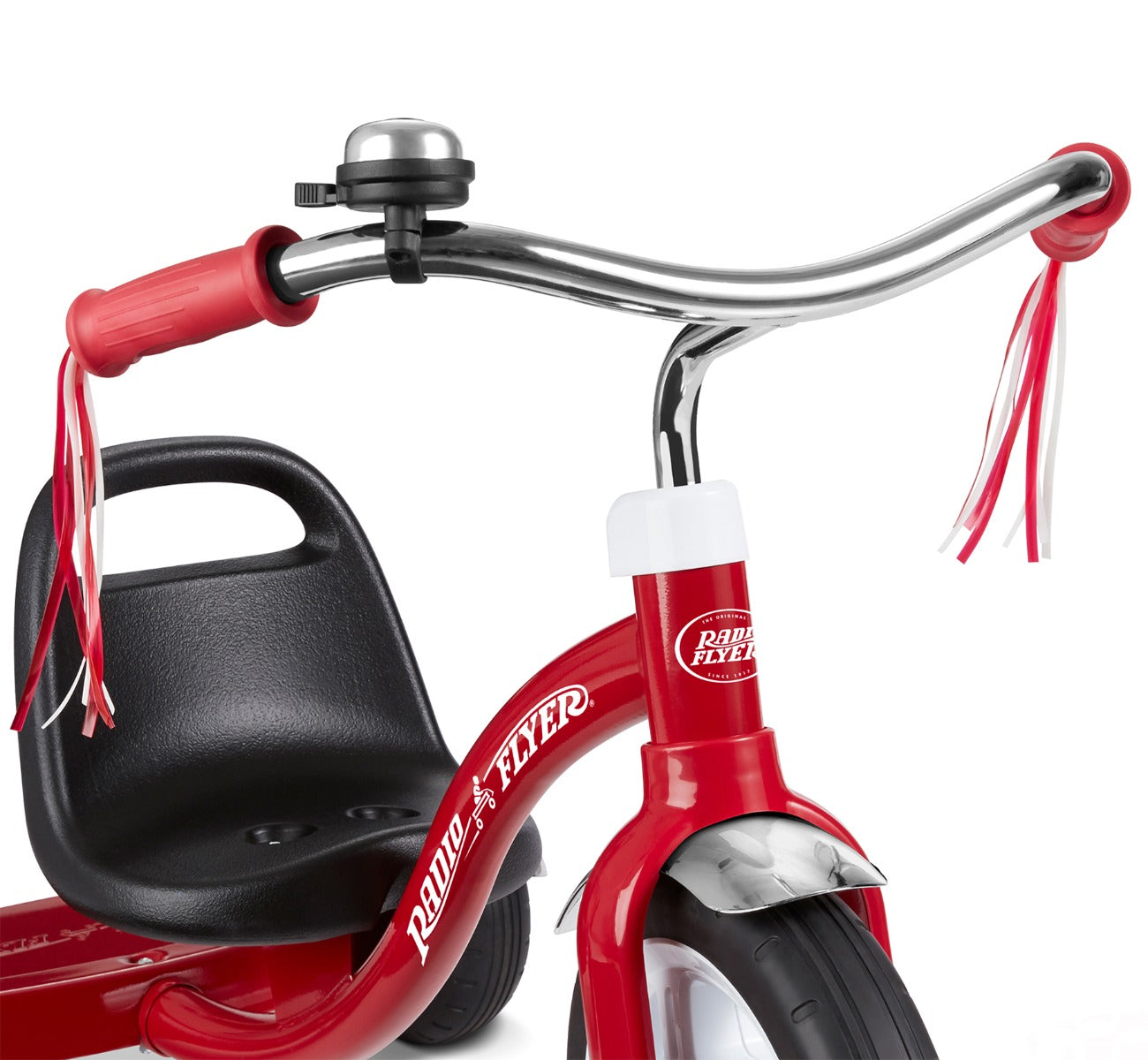 From the chrome handlebars and fenders to the playful, dinging bell, the classic style of this tricycle is a timeless icon of childhood.