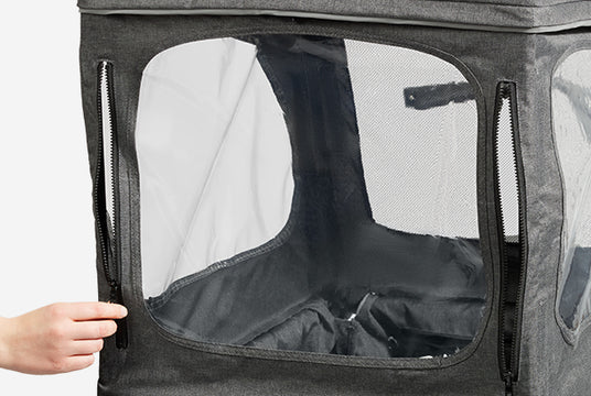 - Front vinyl cover rolls away to reveal high-visibility breathable mesh, perfect for shady open-air riding