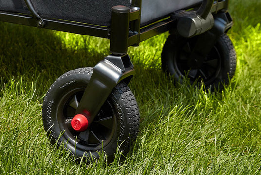 Equipped with off-road puncture-proof tires, The Beast MVP can traverse bumpy terrains with kids or cargo in tow. The rugged tires ensure a smooth ride and durability. With effortless transition from pavement to dirt or gravel, this wagon can withstand the mileage for endless off-road fun.