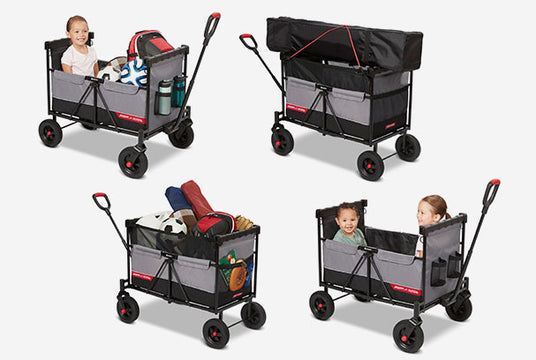 This full-sized wagon for kids & cargo folds compactly so it can be quickly and effortlessly put in storage for your next trip. With an easy one hand fold, you can take or store this wagon anywhere!