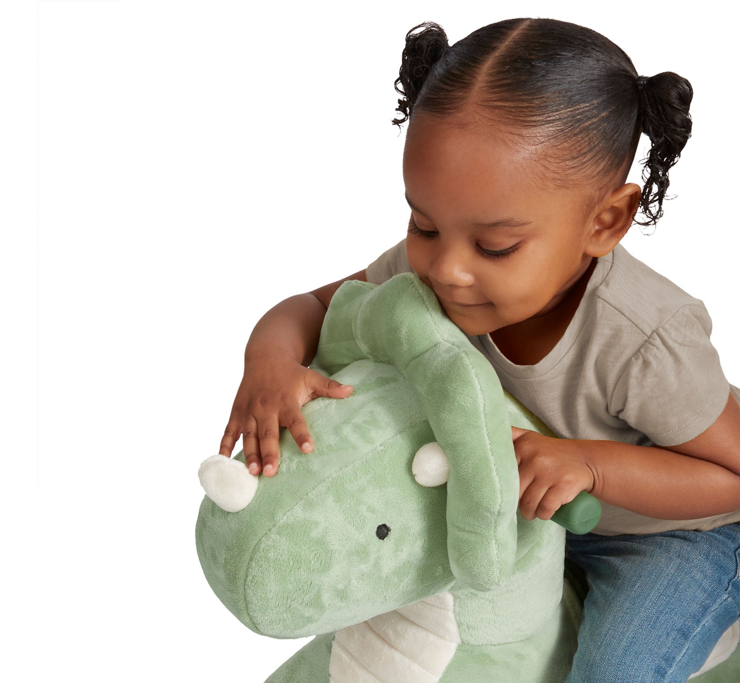 Dash the Rolling Dinosaur is ready to take you on your next greatest adventure! This plush ride-on for toddlers is equipped with EZ-glide wheels for 360º of fun. Dash has rolling caster wheels that are safe for indoor and outdoor use and the easy grip handles provide comfort and control. Dash’s deluxe fabric and comfort seat ensure a soft ride, and his friendly face is guaranteed to invite hugs! Maximum weight capacity is 42 lbs. Recommended for ages 1-3 years.