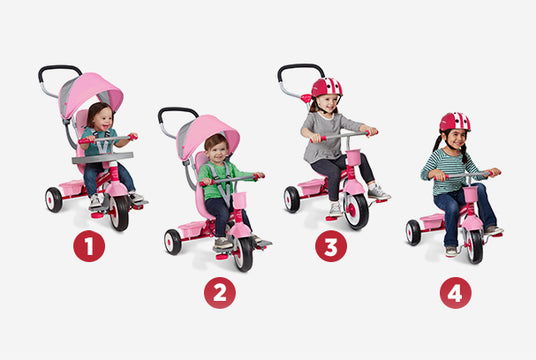 • 4 ways to ride: infant trike, steering trike, learn-to-ride trike and classic trike