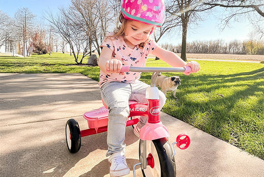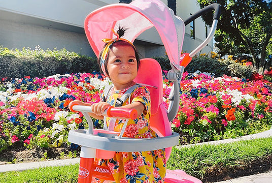 This push tricycle for toddlers blends freedom and safety so both parents and kids can relax and enjoy the ride. The adjustable Steer & Stroll® handle lets you keep control while little riders pedal, push, or simply take in the view. This tricycle is the perfect balance between guided adventure and independent play, all in one sturdy and dependable push tricycle.