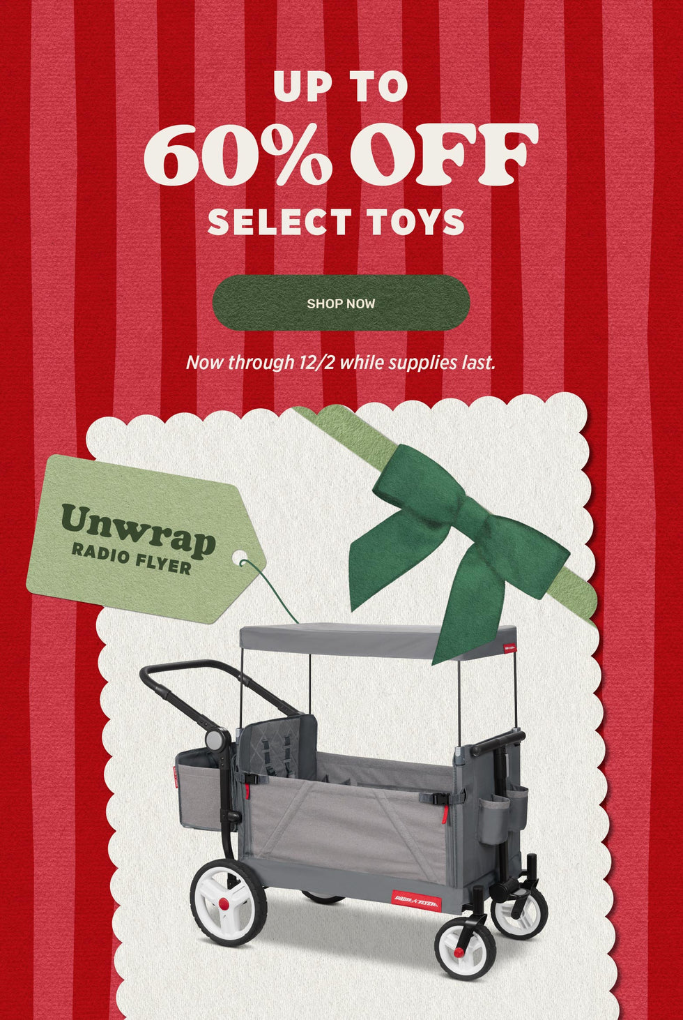 For over a century, Radio Flyer has been the go-to wagon store, delivering joy to generations of families. The original little red wagon and timeless tricycles from Radio Flyer spark smiles and adventures. Built to last with iconic designs, these beloved classics inspire imagination and create memories that last a lifetime. Whether it’s your child’s first bicycle or the latest red wagon, Radio Flyer is here to help your family enjoy the ride.