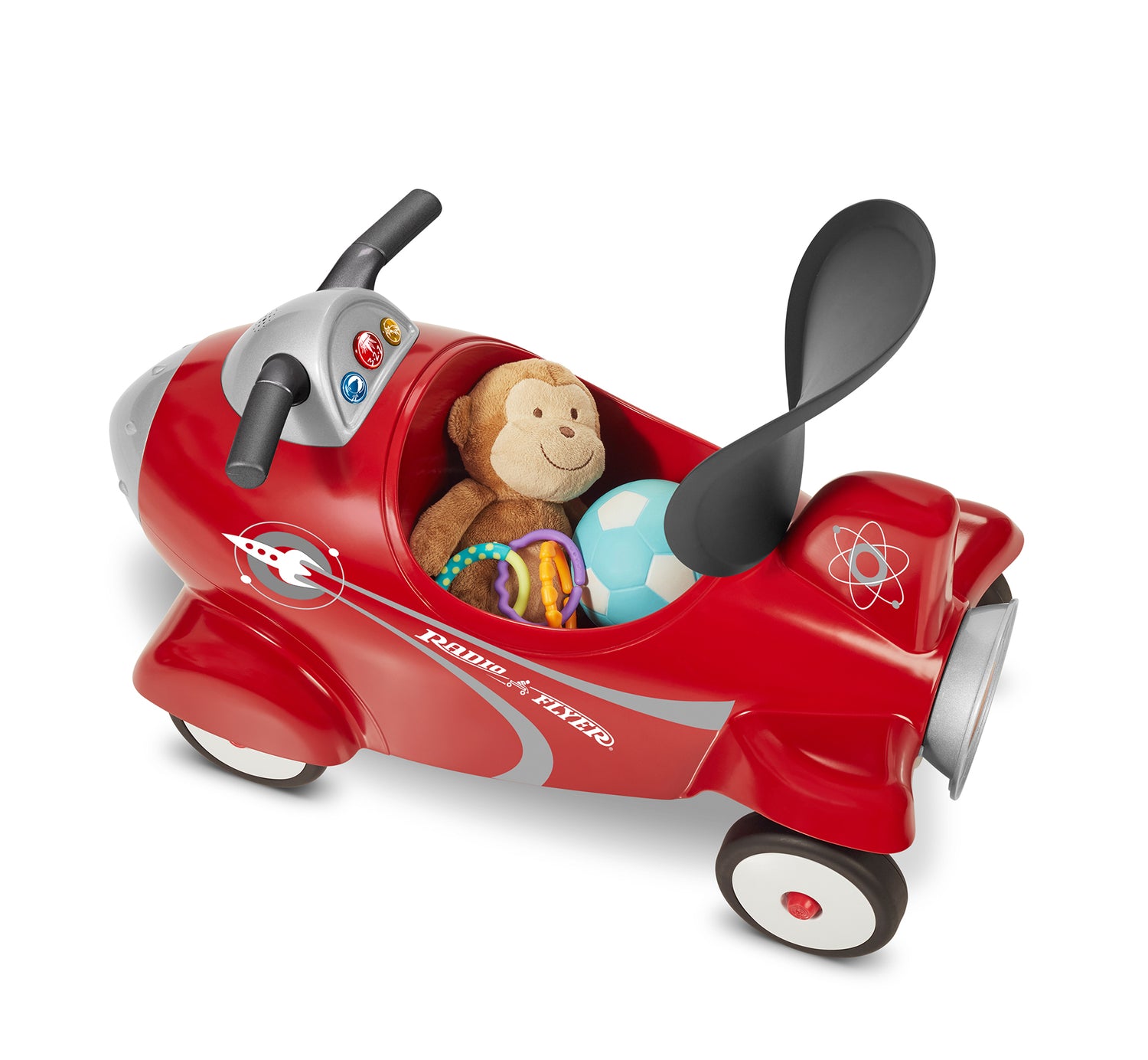 3, 2, 1, Blast off! Watch your little one soar into space with a rocket of their own. Shaped like a rocket ship, his little red ride-on also features cool retro styling and space decals to enhance the fun.