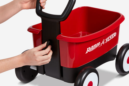 Get two wagons in one with this versatile toddler wagon. Lock the handle in place to use as a walker wagon for beginner walkers. As your child becomes more confident on their own two feet, unlock the folding handle to use as a pull wagon and watch your child enjoy endless hours of fun!
