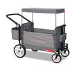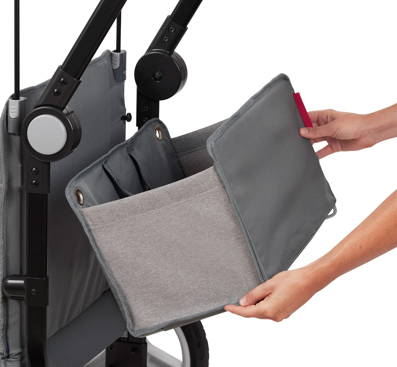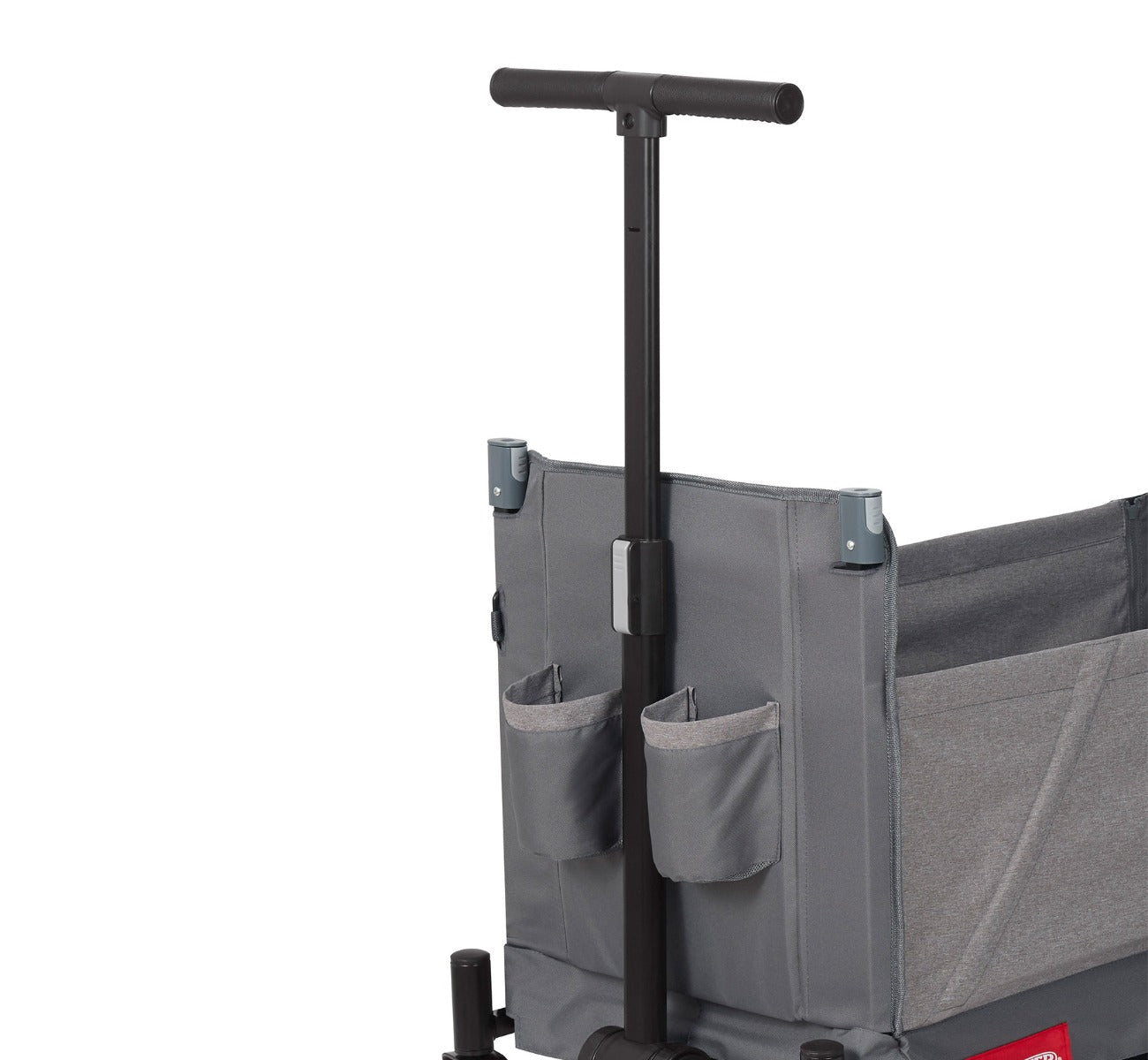 The Radio Flyer Odyssey Stroll 'N Wagon® combines premium design with practicality for family outings. This wagon stroller for 2 features interior mesh storage pouches, perfect for carrying essentials like sunscreen, toys, or keys. The large 12” rear wheels, equipped with rubber treads and bearings, ensure a smooth ride on various terrains. This push-pull wagon with canopy also features our DuraClean® 2.0 fabric, which is easy to clean and built to last. With four cup holders and a roll-up UV protection canopy, the Odyssey Stroller Wagon® is among the best wagon stroller options for any adventure.