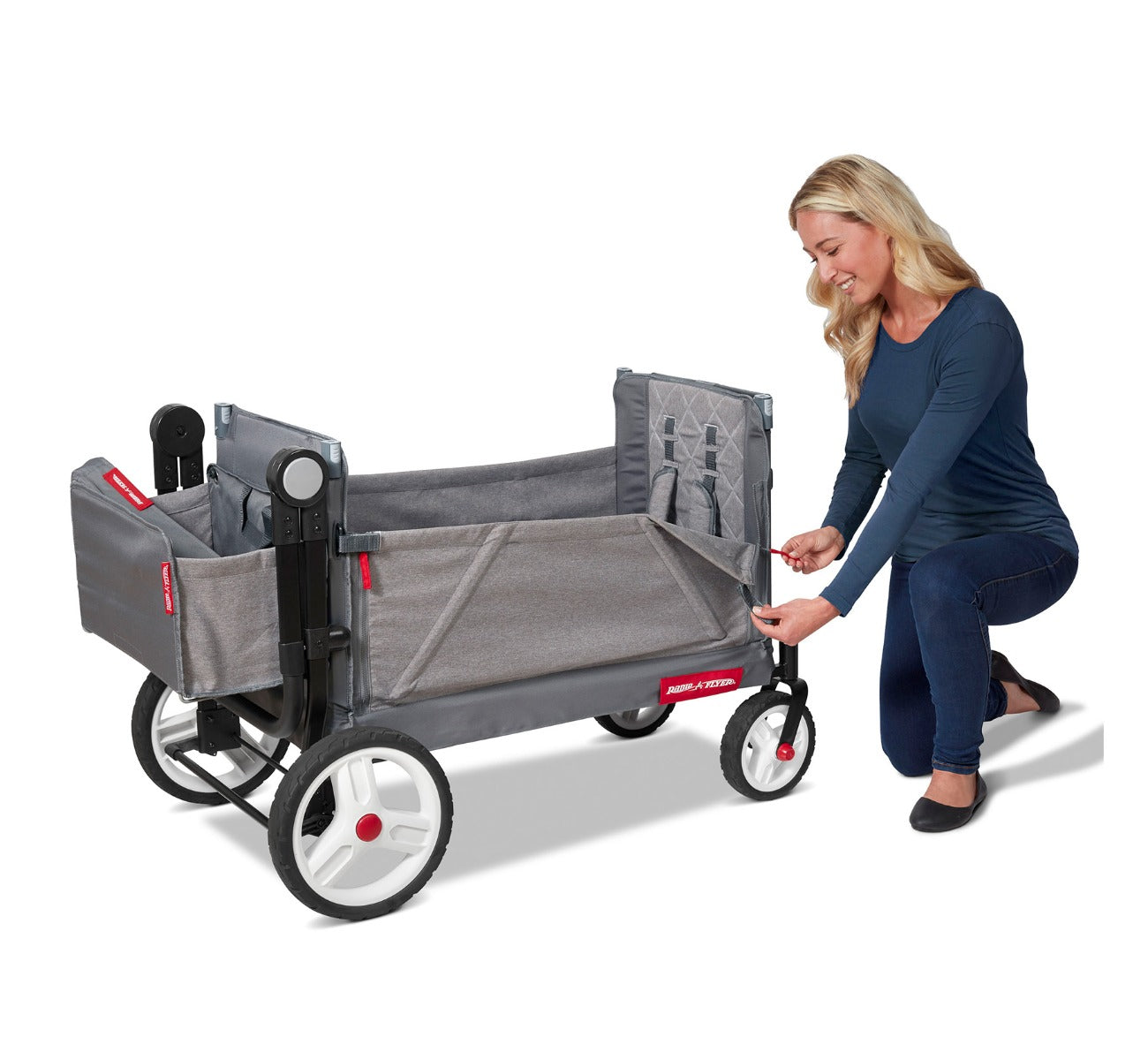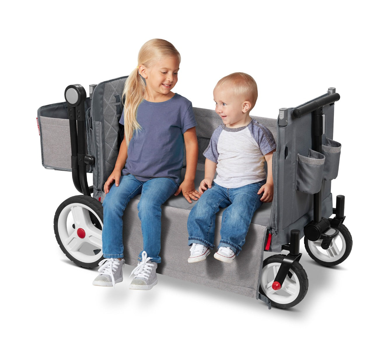 The Radio Flyer Odyssey Stroller Wagon® adapts to your family’s needs with three versatile seating modes. Push or pull little riders during a walk around the neighborhood, convert to bench seating for a picnic in the park, or haul home all of your farmers market finds with ease. This push-pull wagon folds compactly with one hand, making it easy to store and transport. As a wagon stroller for 2, the Odyssey Stroll 'N Wagon® is the perfect choice for families looking for durability, versatility, and convenience for adventures big and small.