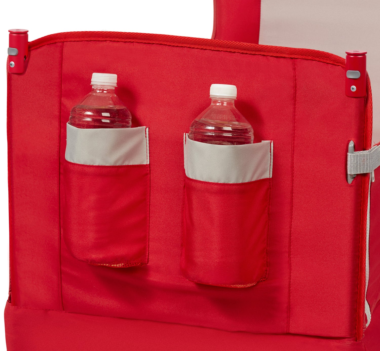 - Rear storage pouch and 2front cup holders keep gear and snacks handy