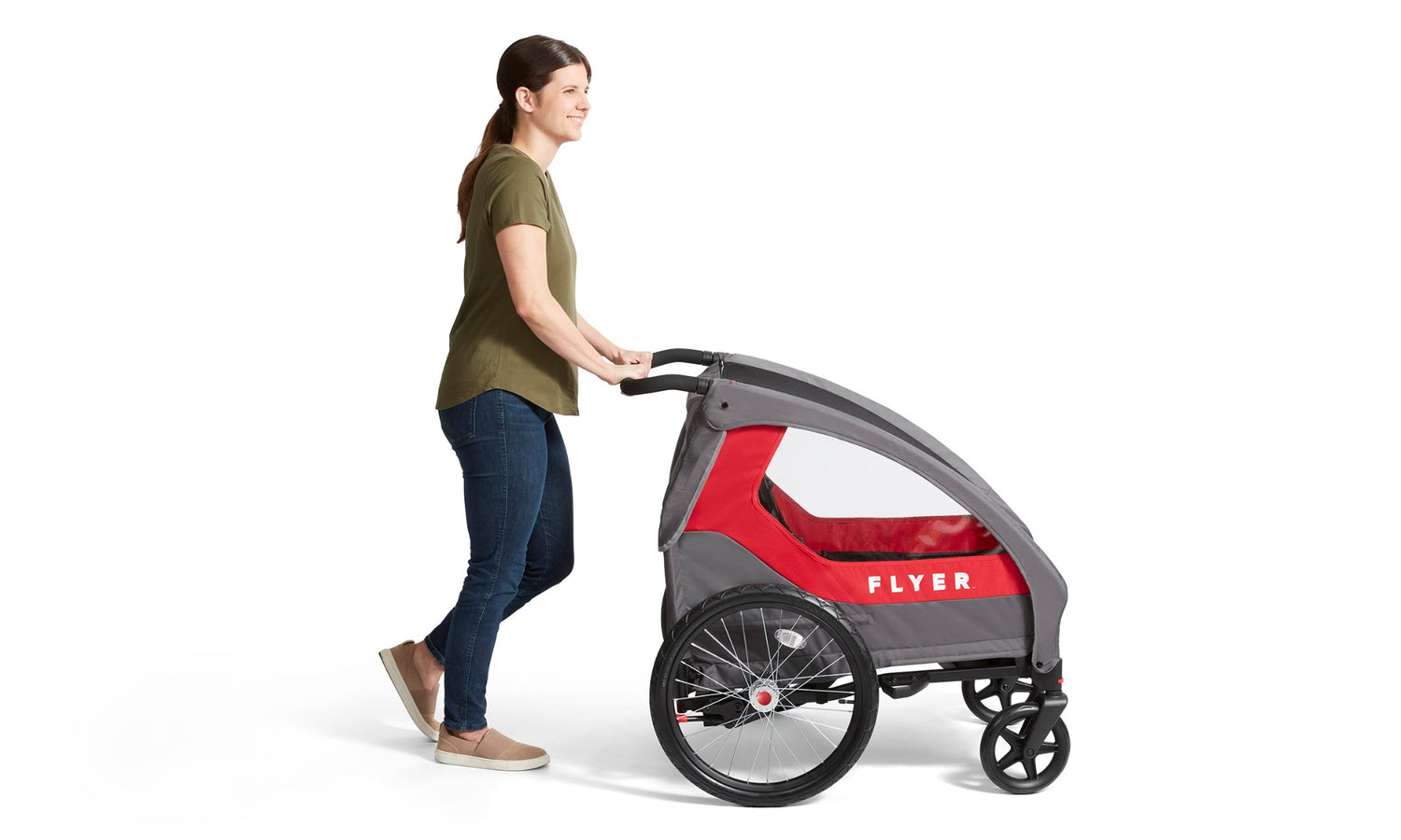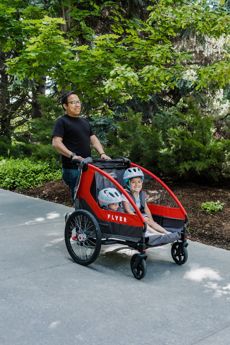 Go from sidewalks to cycle paths in seconds. The Flyer Duoflex is both a stroller and a bike trailer for kids, giving families the freedom to stroll, ride, and explore without switching gears.