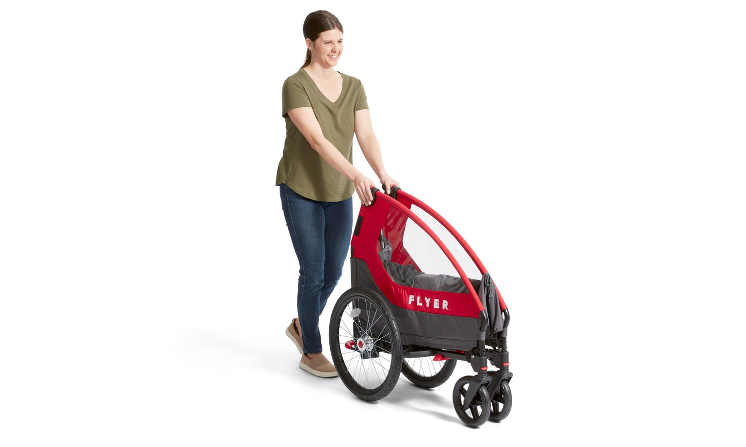 Wherever you go, the Flyer Duoflex comes along with ease. It folds compactly with the wheels still on, so it fits neatly in a trunk, garage, or closet. Families looking for a versatile Radio Flyer bike trailer will love how simple it is to transport and set up in seconds.