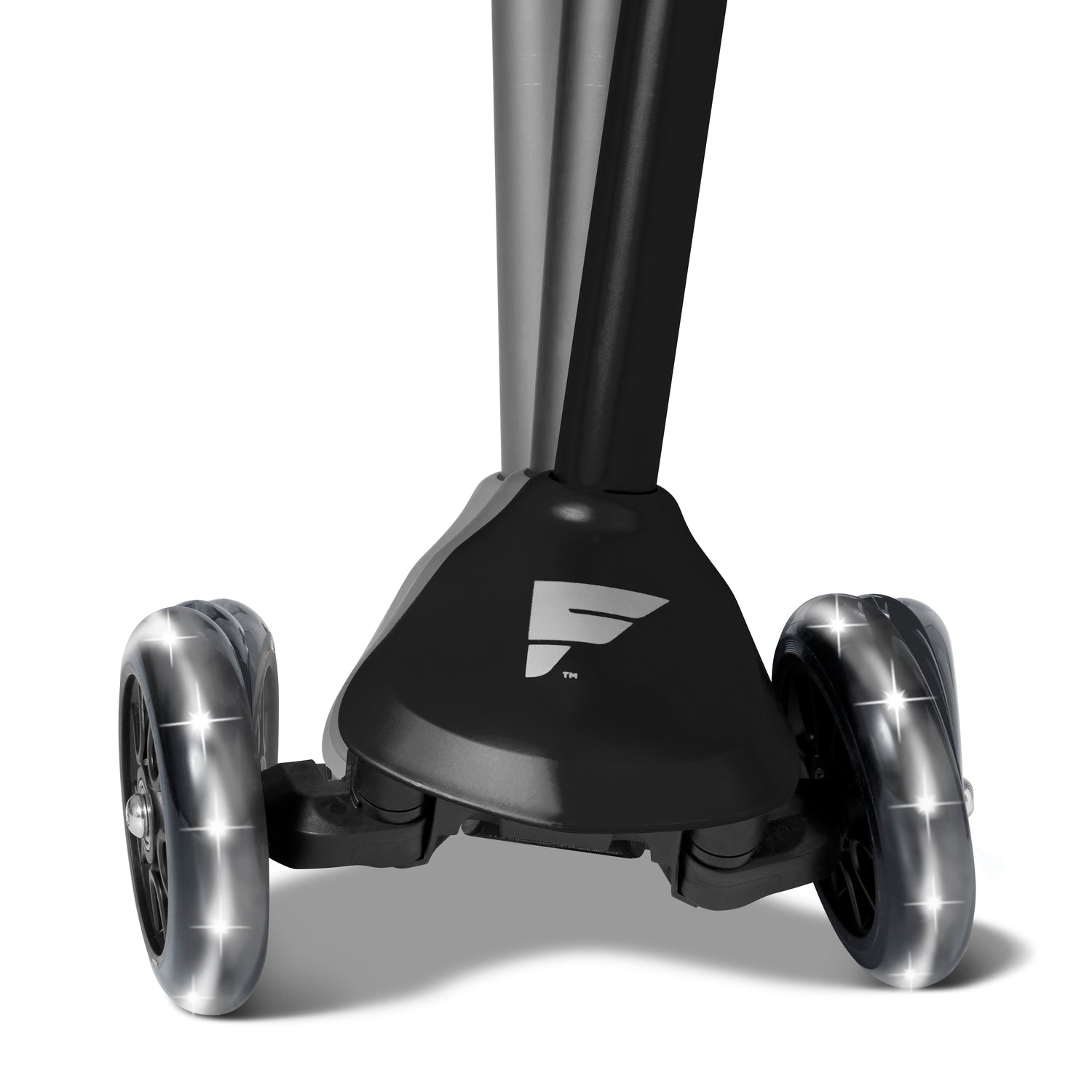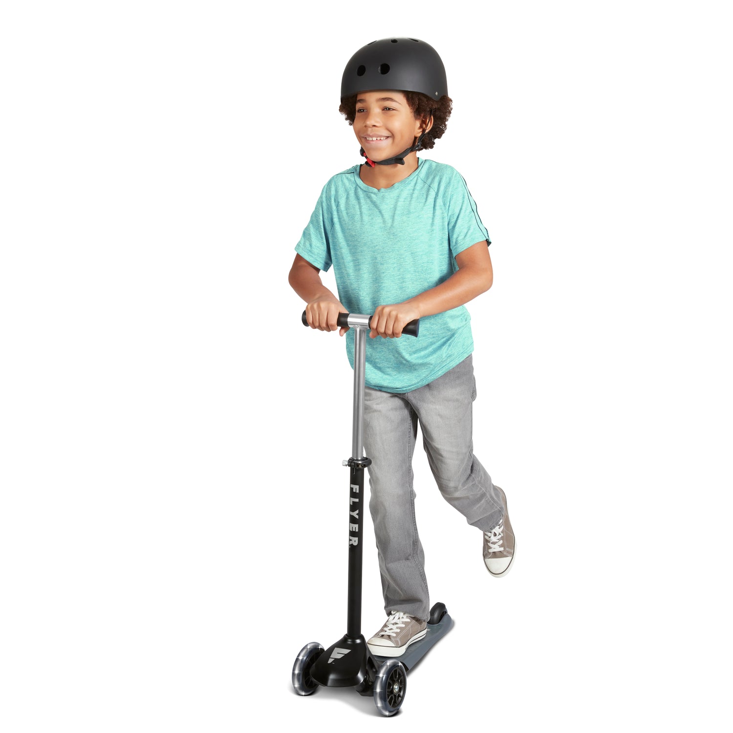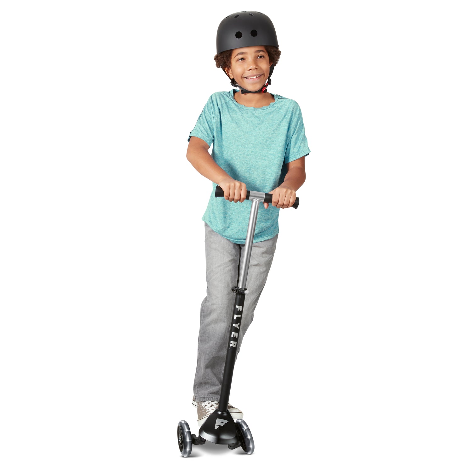 Ride up and down the neighborhood with the Flyer™ Glider Pro! This premium scooter lets experienced riders shift their body weight to create a fun carving motion. The 3-wheel scooter is built with our lean-to-steer technology that allows riders to easily glide & guide their scooter. Light-up wheels add to the fun!