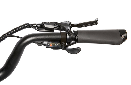 Conquer hills fearlessly. The 8-speed Shimano shifter & derailleur allows you to easily shift between gears on your electric power bike to meet your pedaling needs.